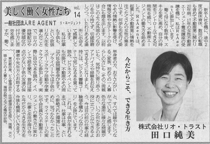 不動産業界新聞「美しい働く女性たち」に弊社田口の記事が掲載されました。